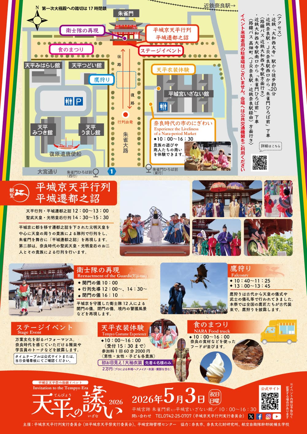 Tempyo-era costumes, influenced by Tang dynasty “Hanfu”, were formalized under the Nara-period “Clothing Ordinance.” Rent an authentic Nara-period costume and explore the historic site of Heijo-kyo to create a truly special memory.